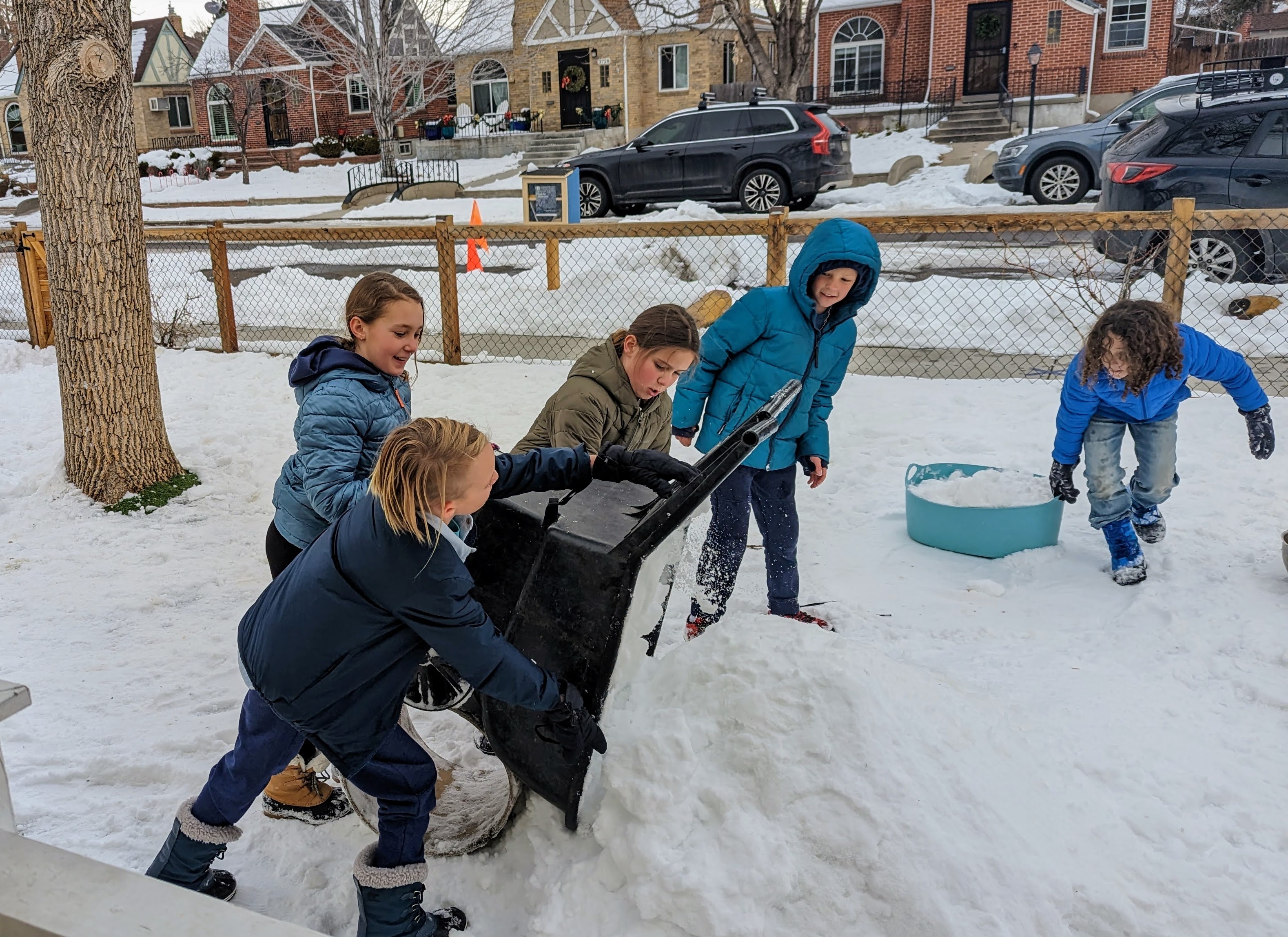 Crews have a 20-30 minute recess/snack break and a 45-60 minute lunch break and we eat outside on the heated covered patio 90% of the time. They are welcome to use school plates and utensils and have access to microwaves for reheating food. After eating, everyone is expected to take care of their own cleanup and washing of any school dishes used.