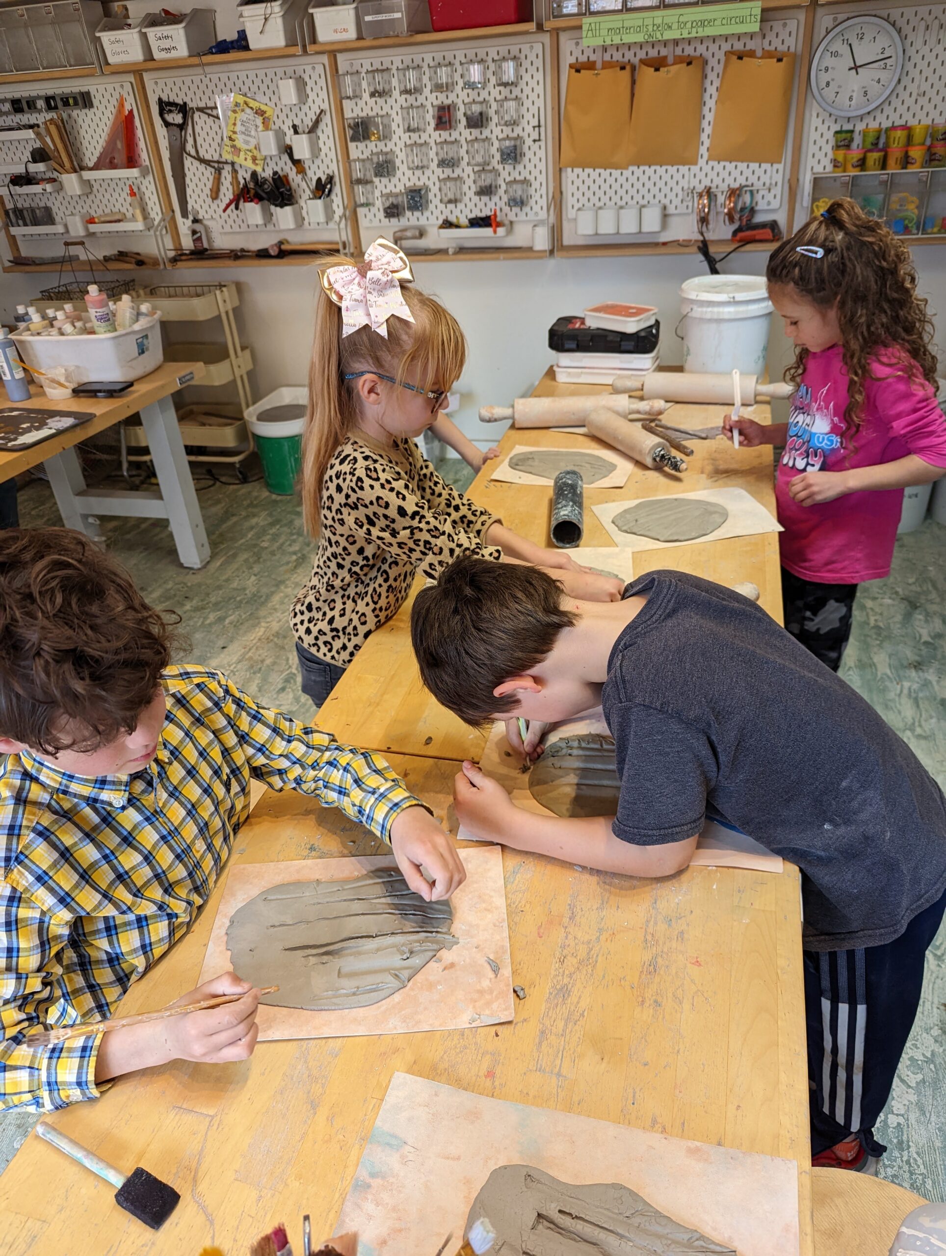 Our studio houses its own kiln and pottery wheels, and the students often have access to creating and designing their own pottery. Lindsay leads some fun ceramics art projects during weekly enrichments from time to time and our founding teacher, Susan, runs an after school pottery class for upper elementary.