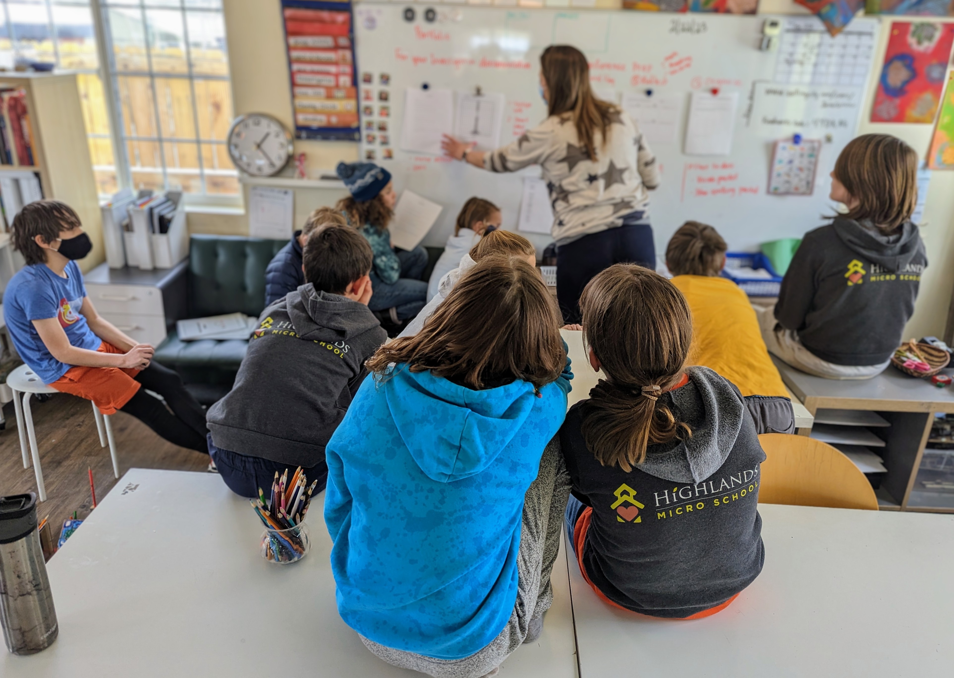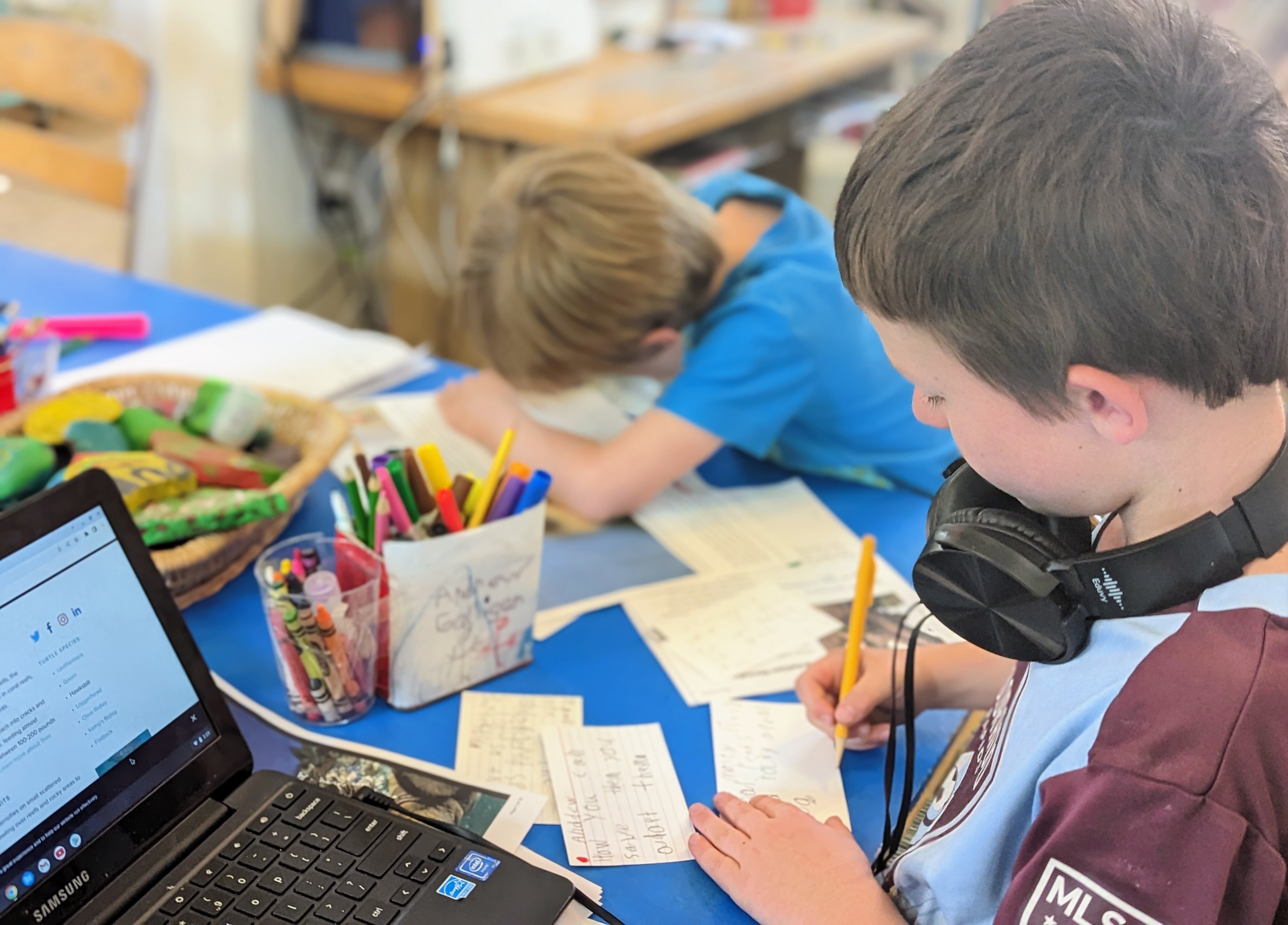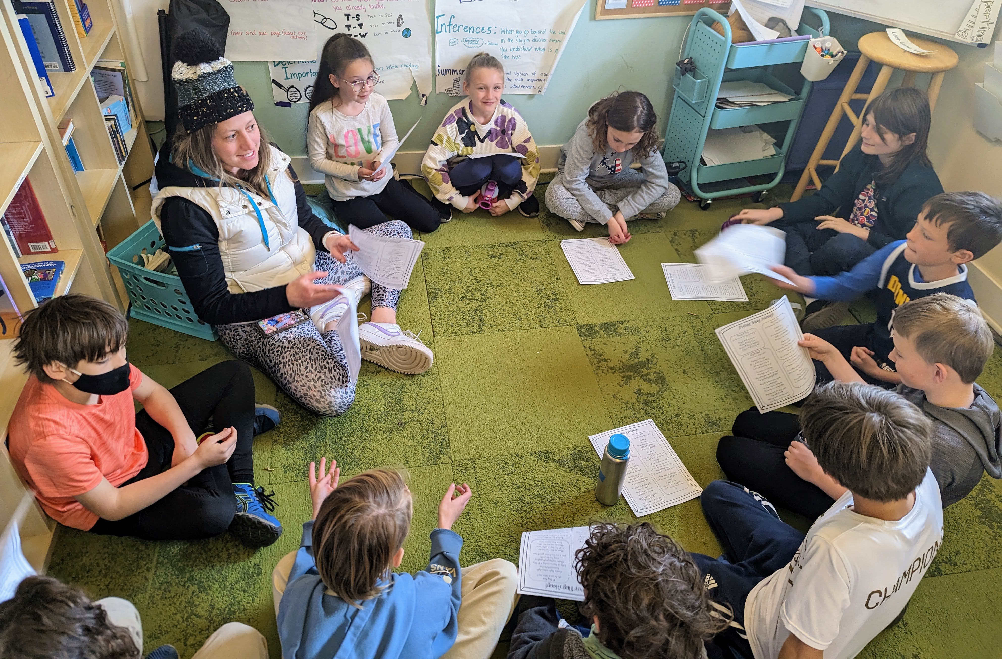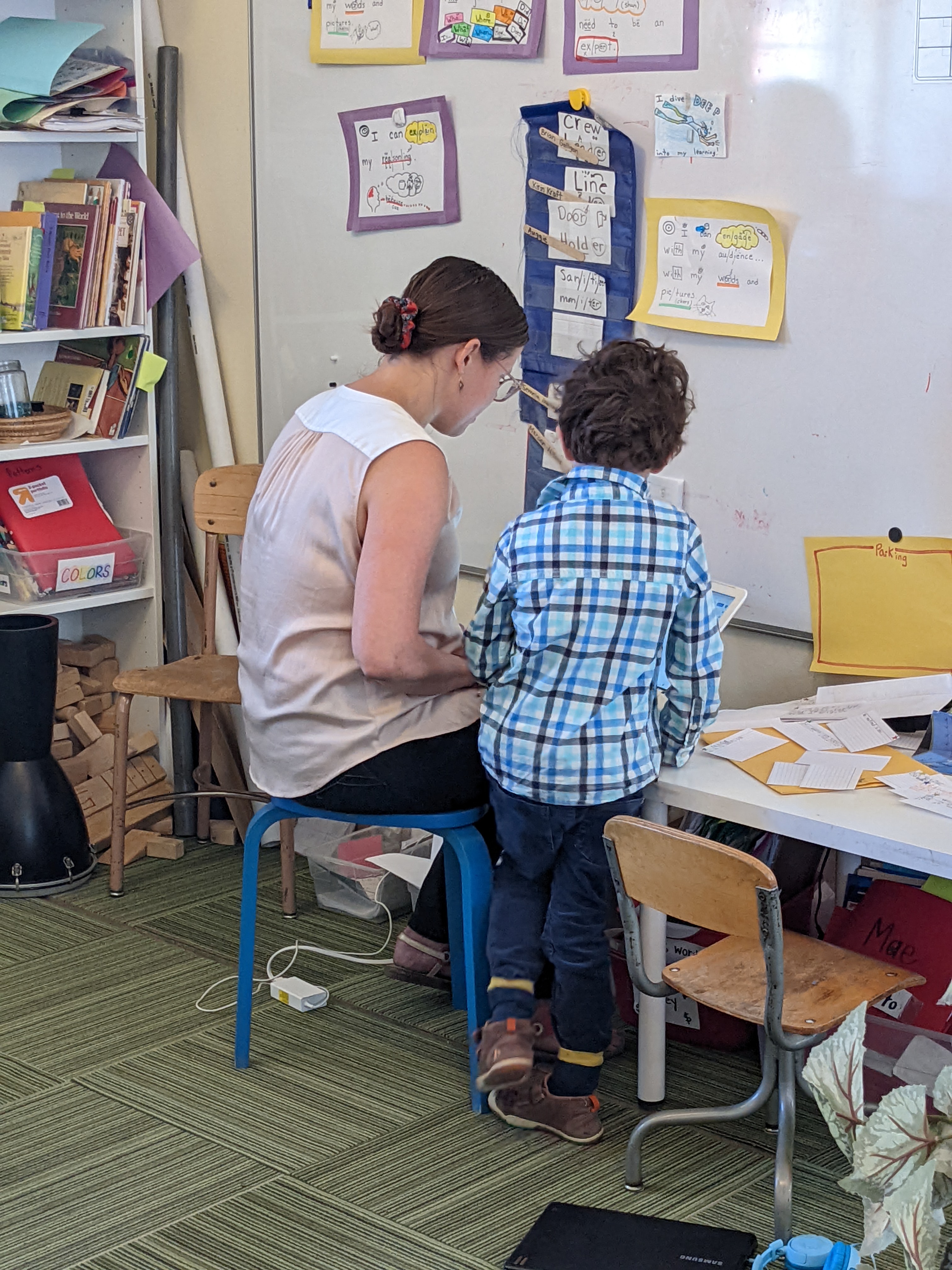 Kindergarten – 2nd Grade Classroom: Our lower elementary classroom features a bright and sunny learning space with versatile work spaces and a designated meeting area that we refer to as “Crew”. Our K-2 students enjoy an ample library, and lots of room to find a cozy quiet corner to settle into some writing or a good book. Han, our lead teacher in this classroom, has a designated meeting space for small group work and there is one communal table that fits all of the students together for whole group work flexibility. It has its own spacious bathroom and is right off of our cubby and kitchen area, which the kids often utilize to heat up their lunches and wash their dishes.
